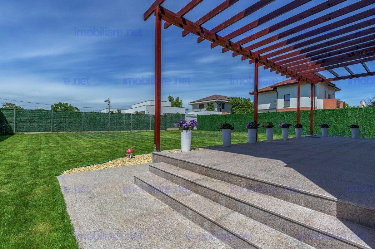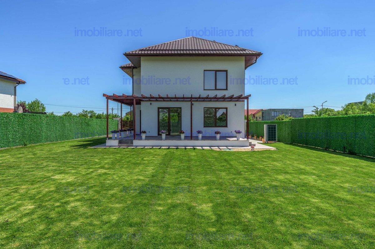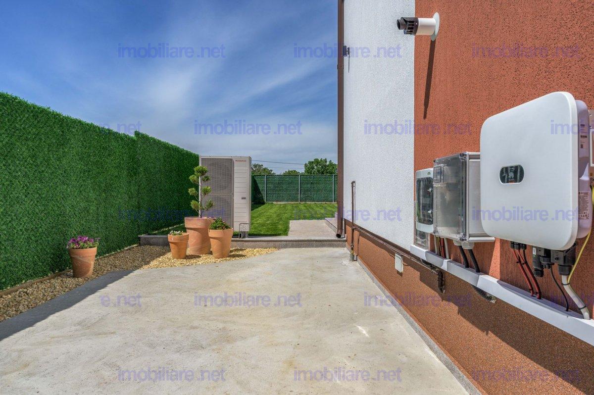 Vila eleganta, cu arhitectura moderna si spatii generoase pentru o familie activa ce doreste confort. Curte complet amenajata, terasa si alei placate cu granit, sistem automatizat de irigatii, pompa de caldura si sistem fotovoltaic performant. Interior luminos, living spatios, 3 dormitoare si 3 bai. Incalzirea in pardoseala cu reglaj zonal, inclusiv in bai, izolatia de calitate, garanteaza un consum minim de energie, casa indeplinind cel mai inalt standard de eficienta energetica nZeb. Comision 0%. Posibilitate mutare imediata Suprafata teren 700 mp Suprafata construita 315 mp Structura P+1 + pod 90 mp Terasa exterioara placata cu granit 35 mp Balcon 10 mp Scara interioara placata cu lemn masiv ( stejar ) Bai placate cu marmura Incalzire in pardoseala Pompa de caldura Immergas hibrid 12 kw + 24 kw centrala termica ( Immergas Magis Combo V2) Instalatie fotovoltaica hibrida trifazata cu o putere de 8 kw Geamuri tripan tamplarie Salamander cu 6 camere de izolare termica si garnituri triple Statie de filtrare si dedurizare a apei Usa intrare aluminiu cu grosime de 92 mm si pachet geam fumuriu 4 camere. Incuietoare in 5 puncte WINKHAUS cu functie zi/noapte Doua locuri de parcare auto cu sistem automat de deschidere /inchidere a portii de acces auto Teren 700 mp complet amenajat cu plante si gazon. Prevazut cu sistem automat de irigat si aspersoare subterane