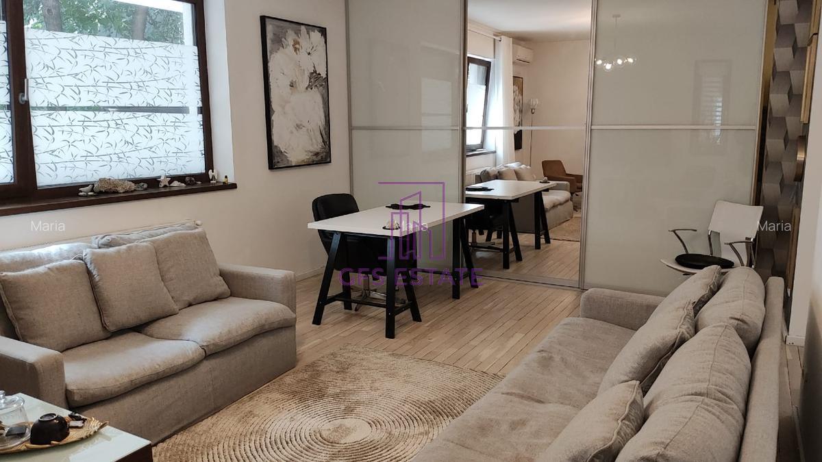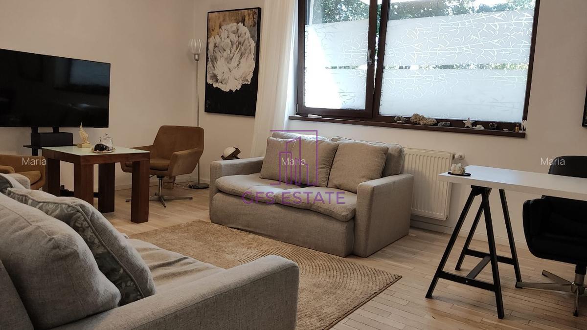 GFS ESTATE ofera spre inchiriere un apartament cu 2 camere, un dormitor, parter / 3, confort I, in bloc apartamente, decomandat, constructie finalizata, 73mp, constr. 2016, supr. utila : 78mp, utilat, mobilat, o baie, o bucatarie, un balcon, masina de spalat vase, centrala proprie, smart TV, posibilitate de loc de parcare