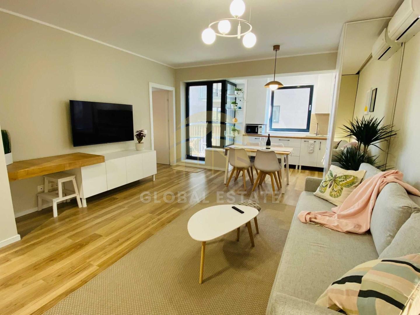Apartamentul este decomandat, are o suprafață totala de 55 mp, este situat la etajul 8 din 12 și se închiriază complet mobilat și utilat.