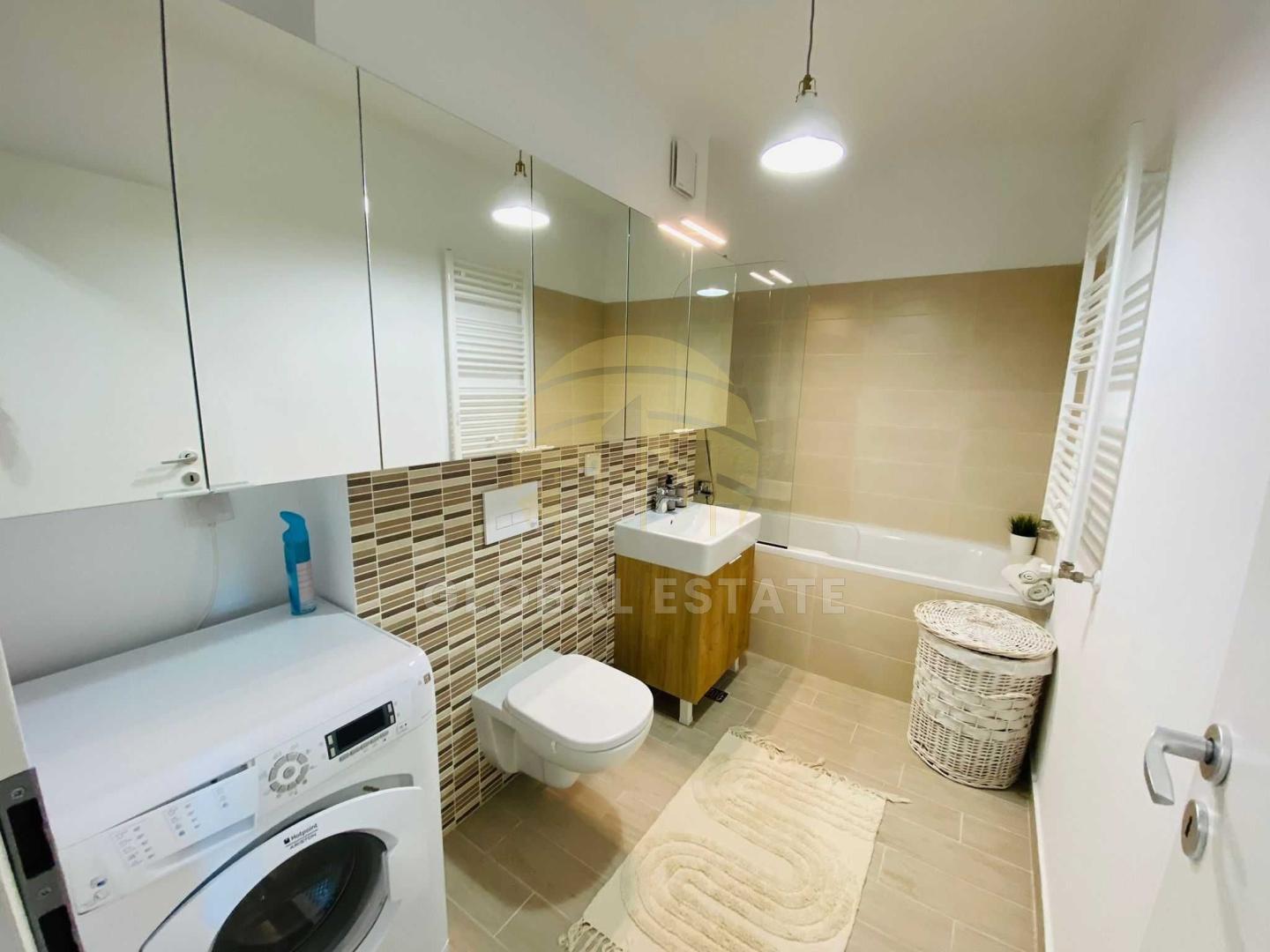 Dispune de centrala termica proprie aer condiționat, baie, bucătărie, terasa, loc de parcare optional contra cost.