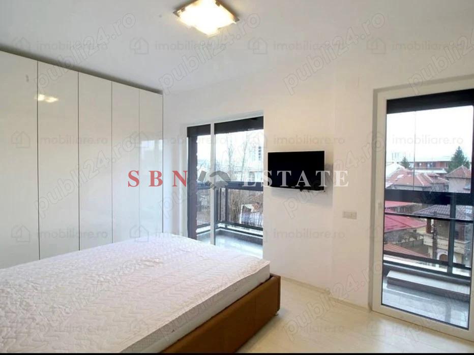 SBN Estate va ofera spre inchiriere un apartament situat în zona Domenii, la etajul 3 al unui imobil boutique cu 4 etaje, construit în 2018, include 3 camere (2 dormitoare, living + bucătărie open space) și 2 băi. Finisaje de lux, mobilat și utilat , cu centrală termică proprie , încălzire în pardoseală, aer condiționat și dotări premium. Apartamentul dispune de 2 locuri de parcare, unul în garaj și unul în curtea interioară.