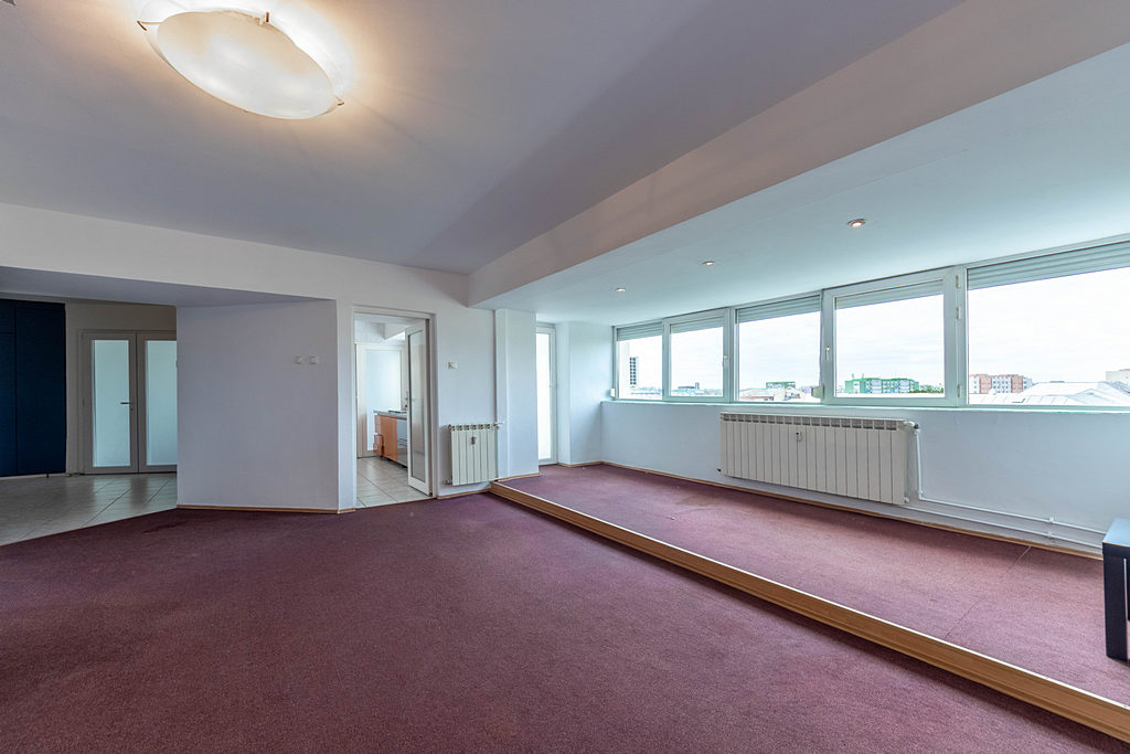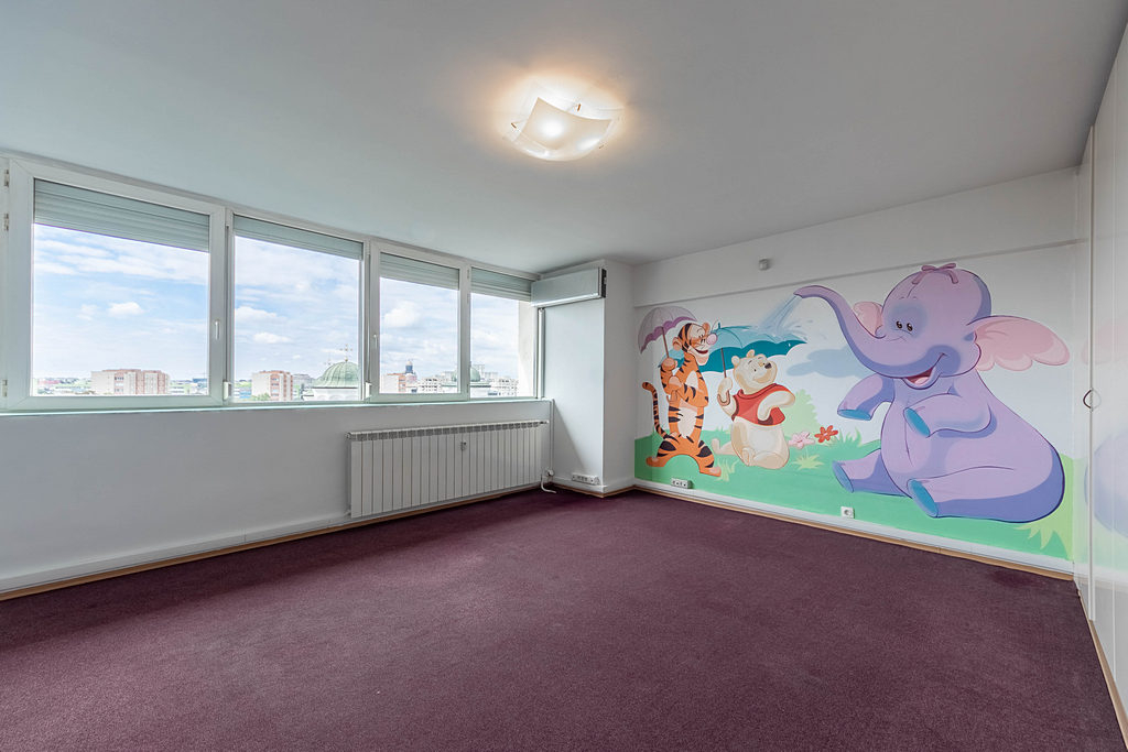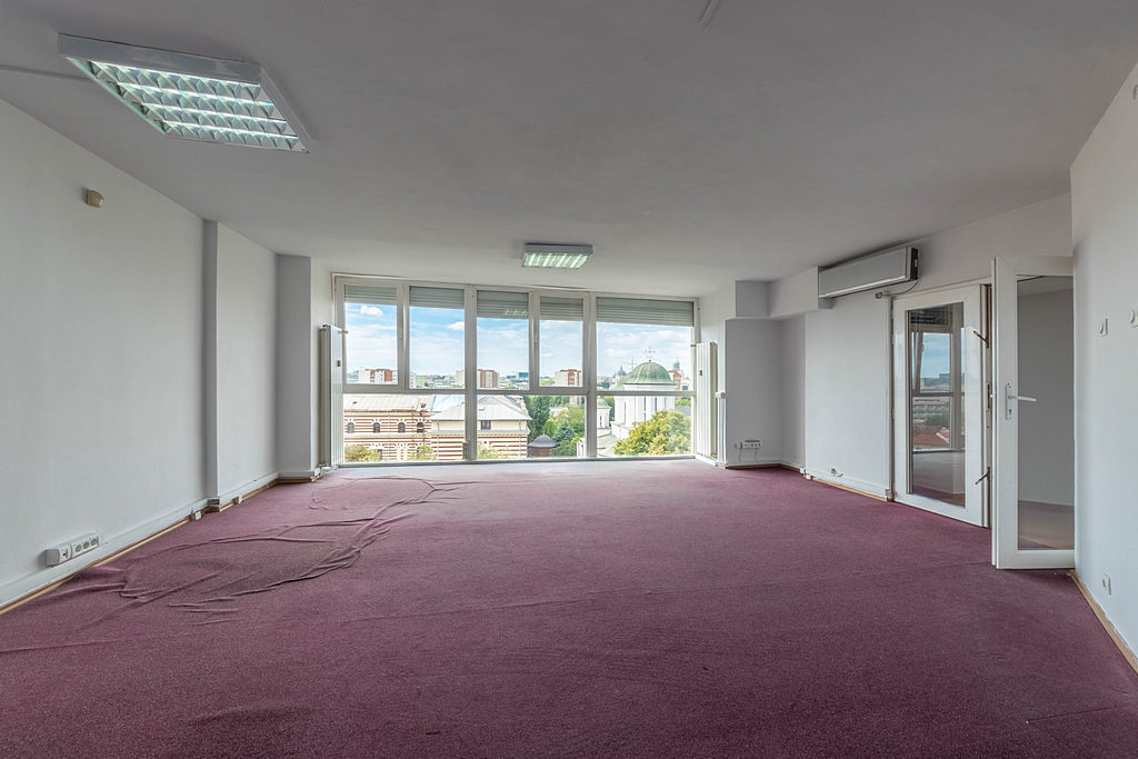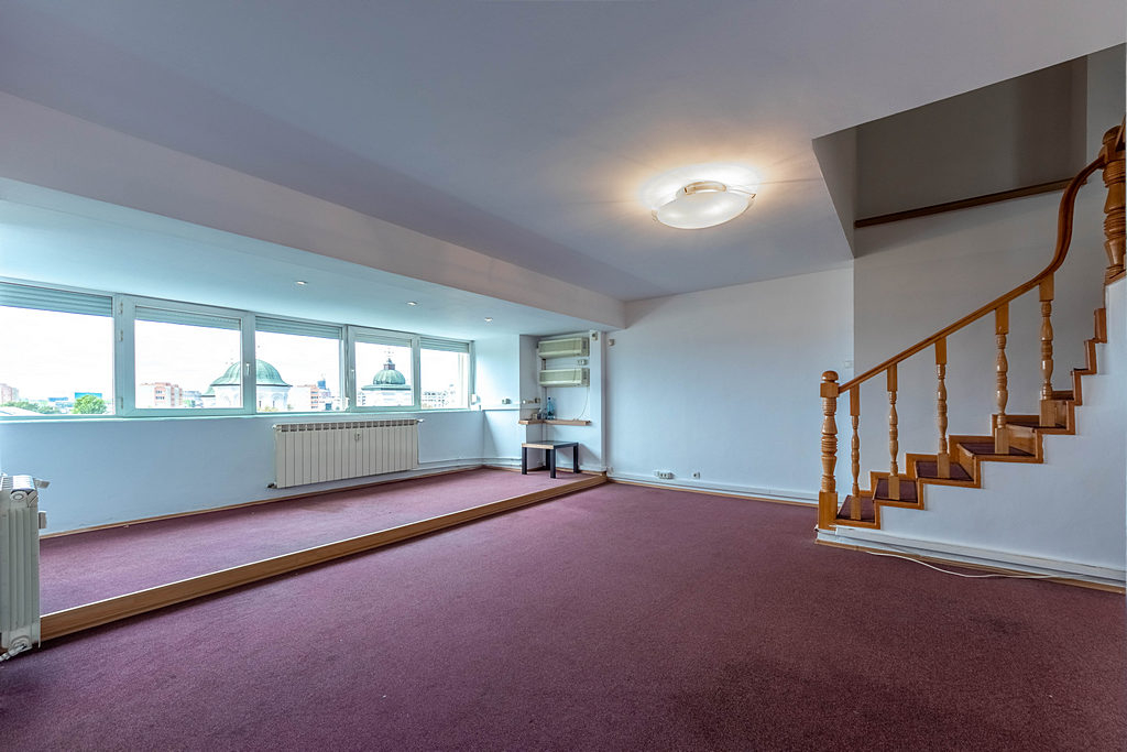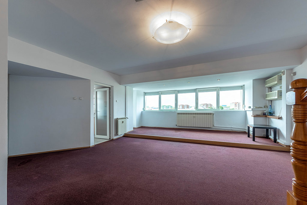 Duplex, stradal, 4 camere mari, jaluzele externe, mochetat, zugravit, 2 bai, aer conditionat in toate partitiile, vedere spre biserica, bucatarie utilata, retea calculatoare trasa, pretabil firme,