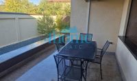 Apartamentul, finalizat în 2015, are 125 mp utili pe un singur nivel și beneficiază de curte proprie și terasă exterioară. Este complet mobilat, recent zugrăvit, și dispune de bucătărie, living, dining, baie de serviciu și două dormitoare, fiecare cu baie proprie.