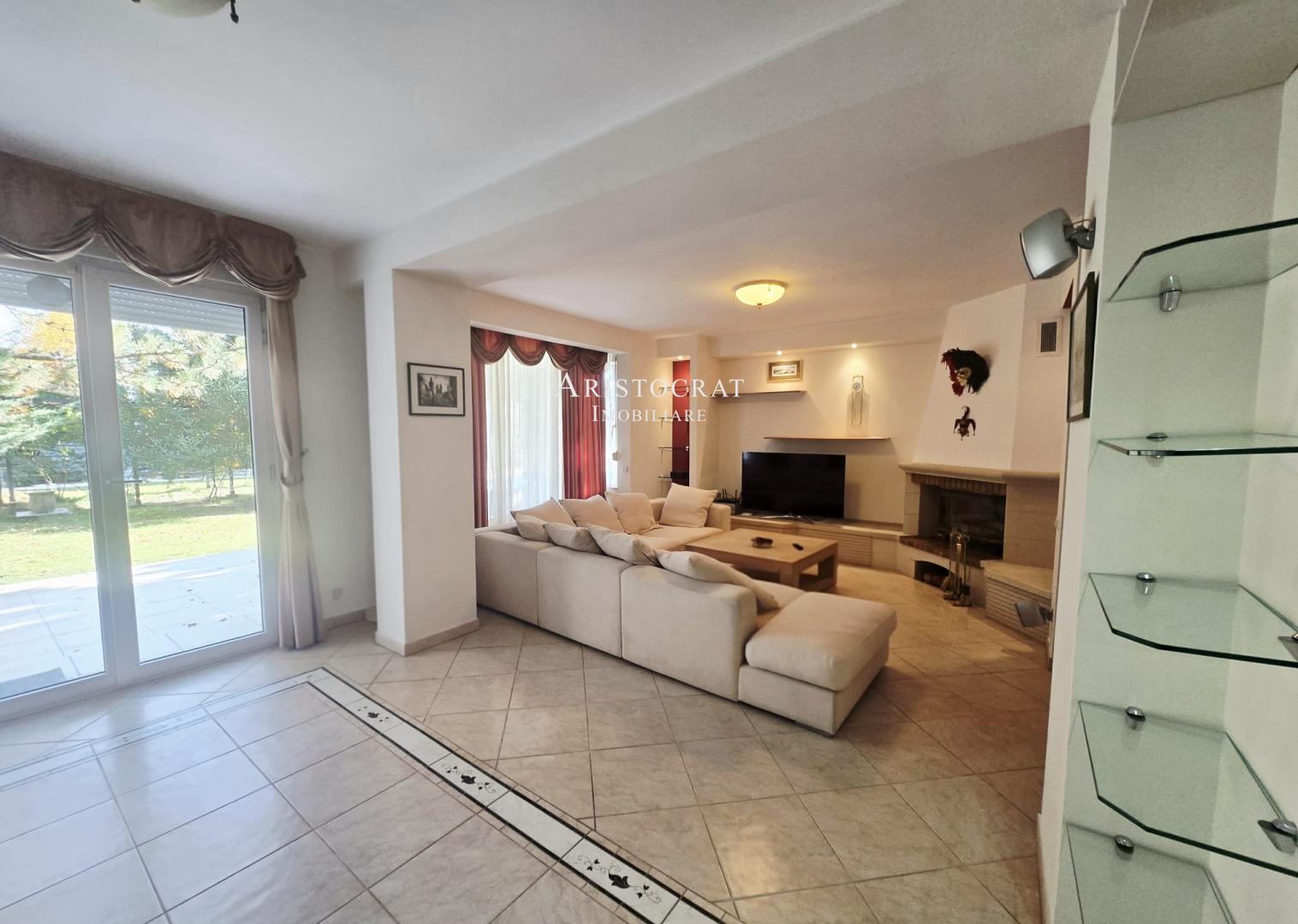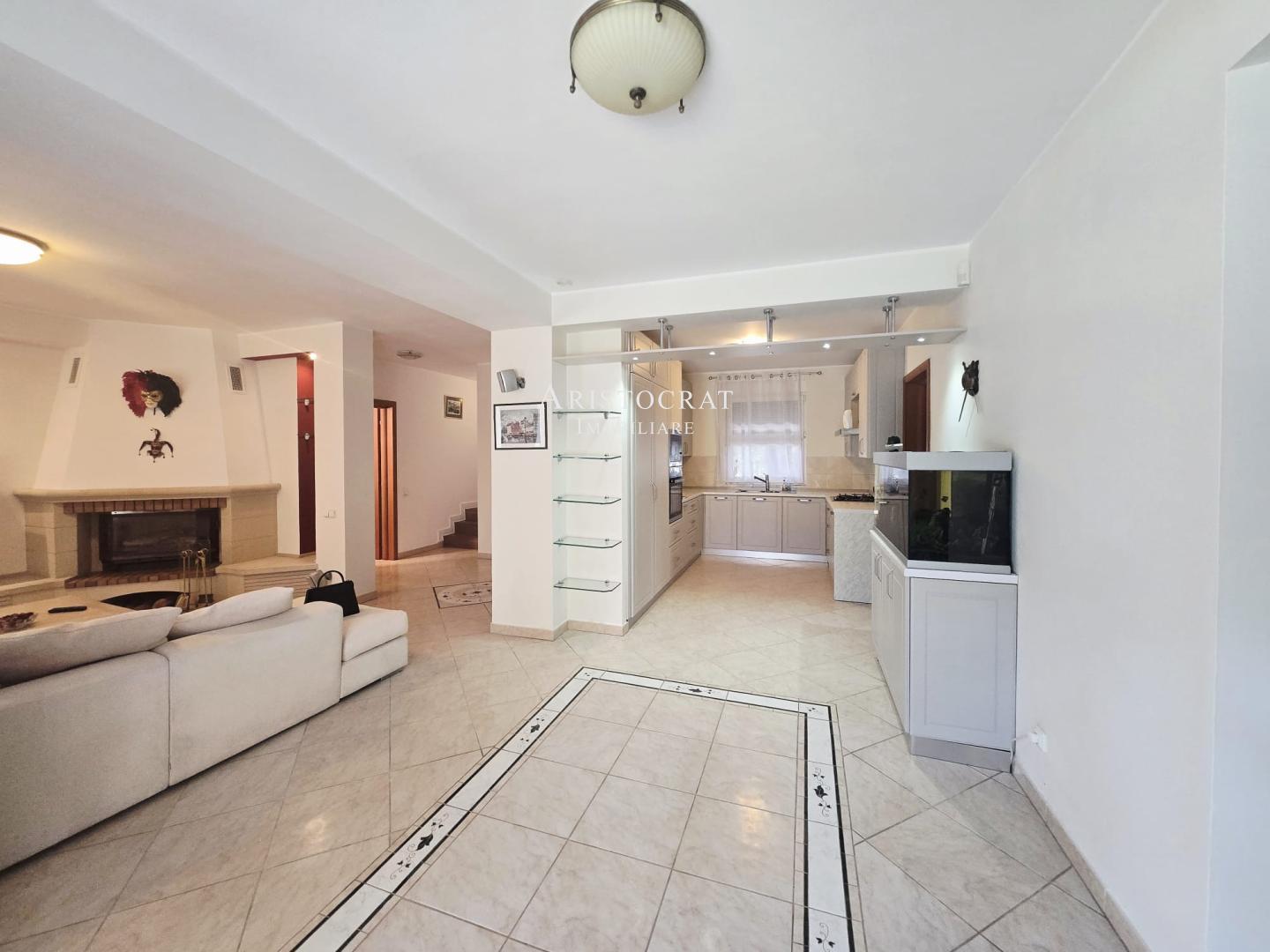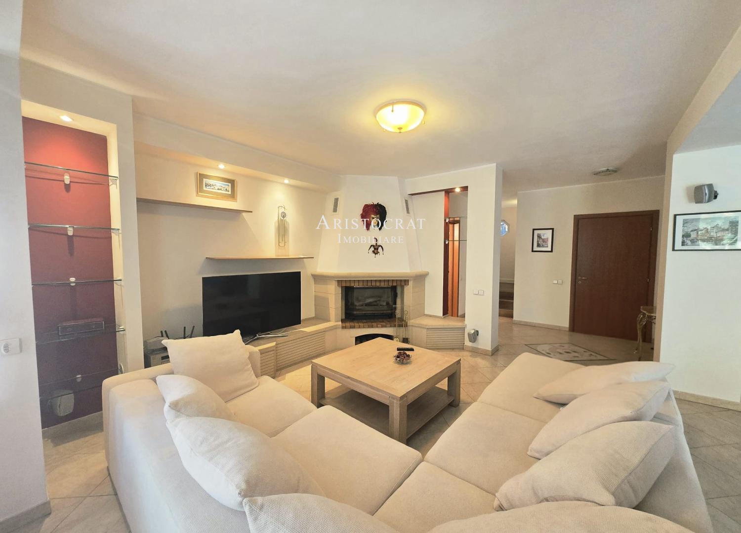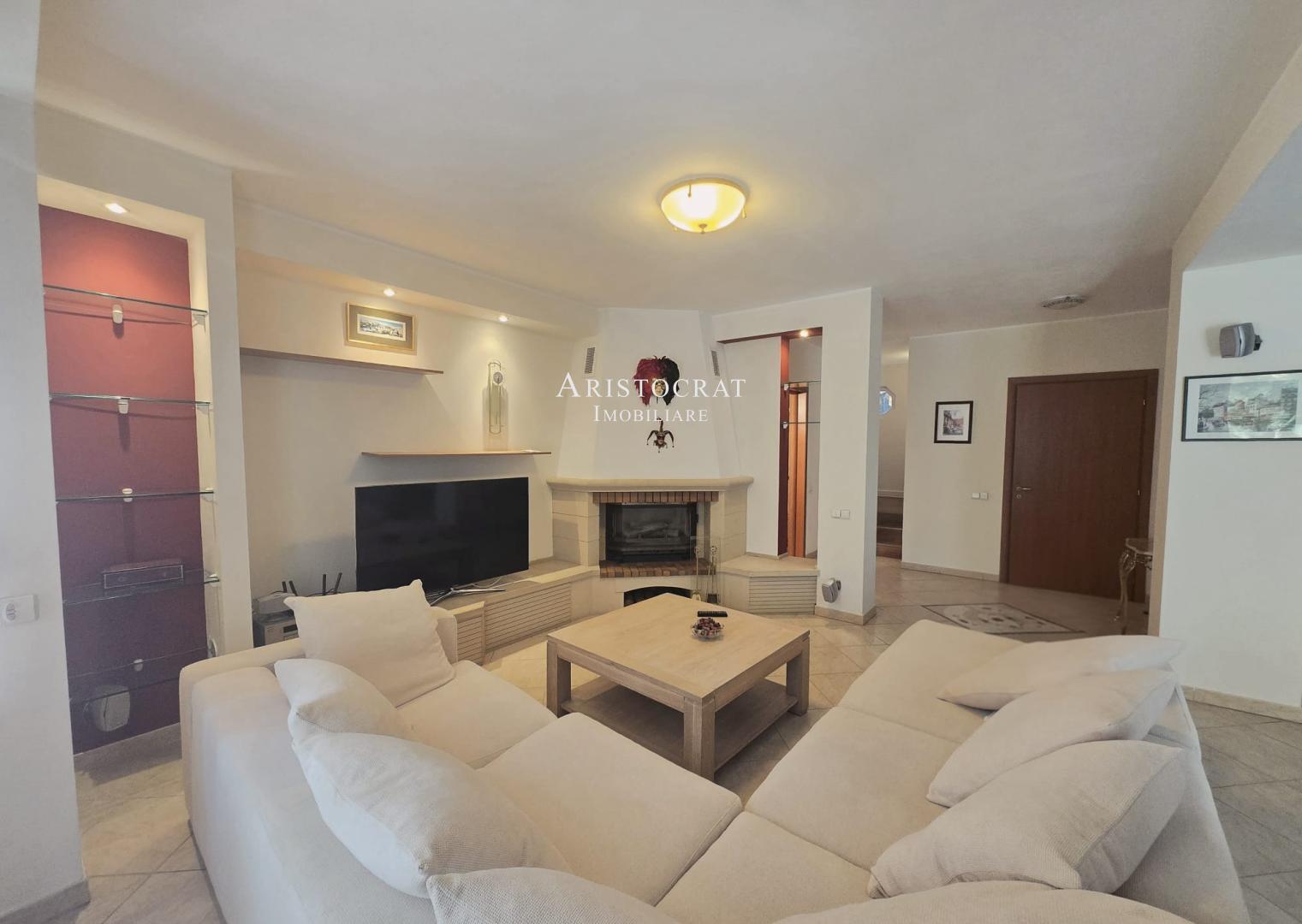 - Se bucură de un șemineu funcțional pe lemne, pentru un ambient cald și primitor în sezonul rece.