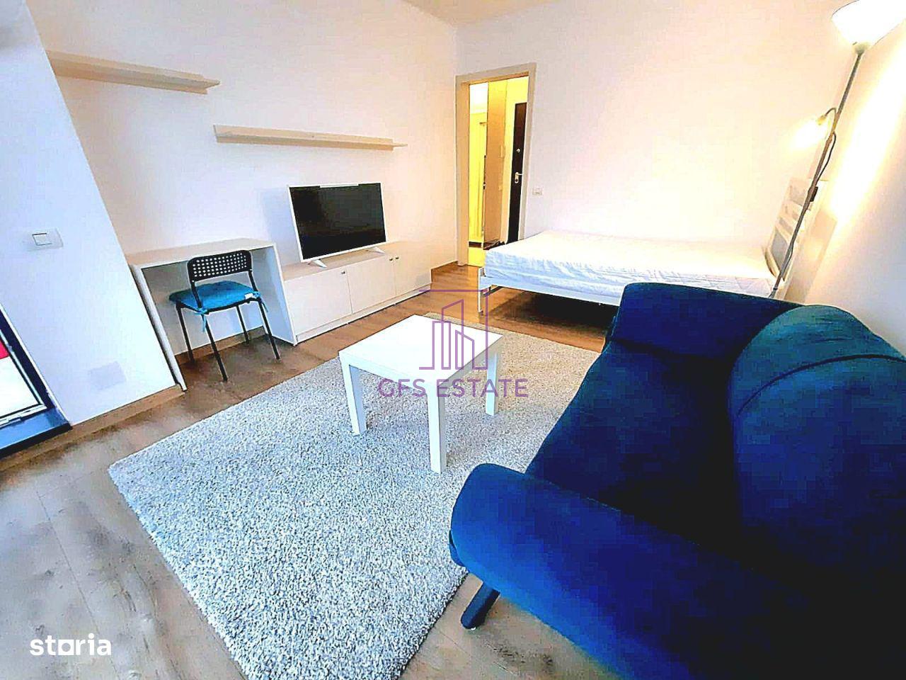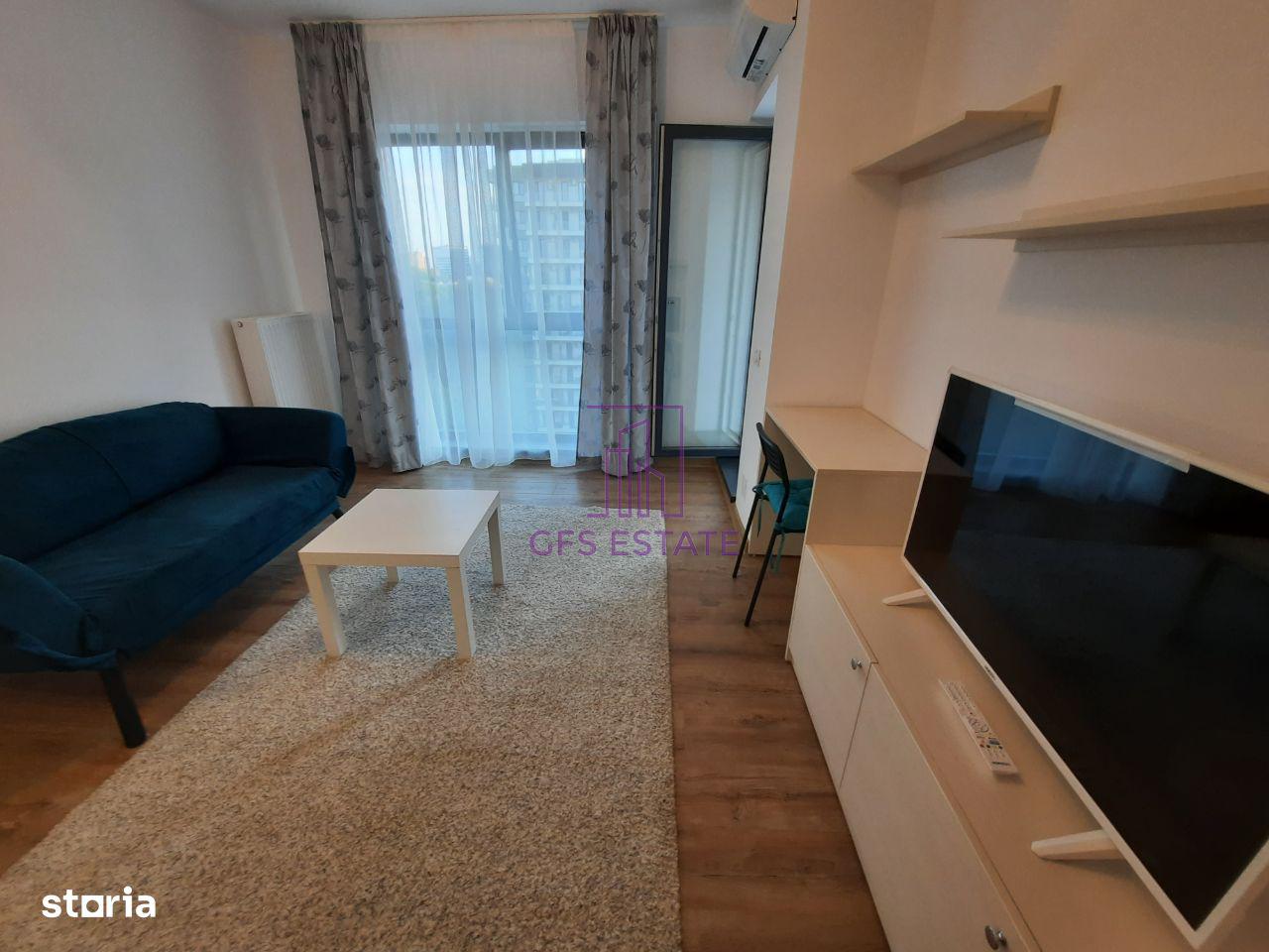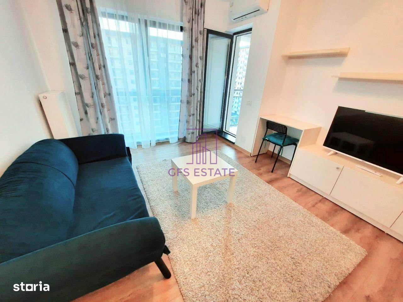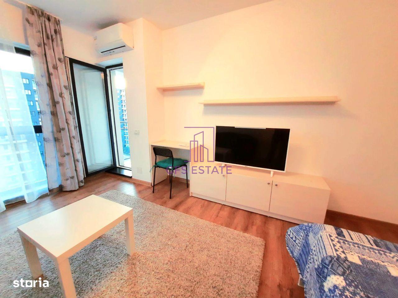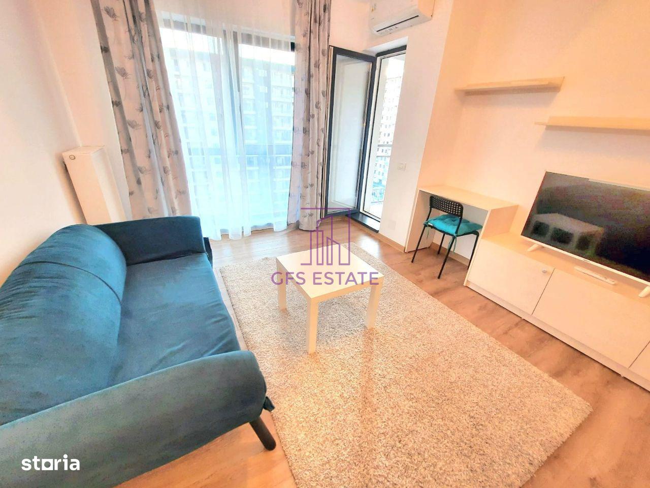 GFS ESTATE ofera spre inchiriere studio, un dormitor, etaj 7 / 11, confort I, in bloc mixt, decomandat, constructie finalizata, 43mp, constr. 2018, supr. utila : 40mp, utilat, mobilat, o baie, o bucatarie, un balcon, centrala proprie, aer conditionat, smart TV.