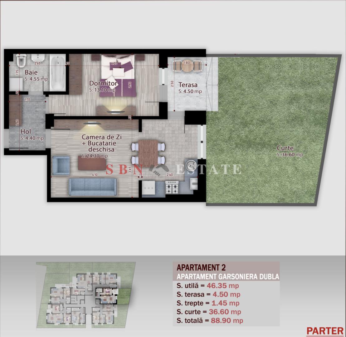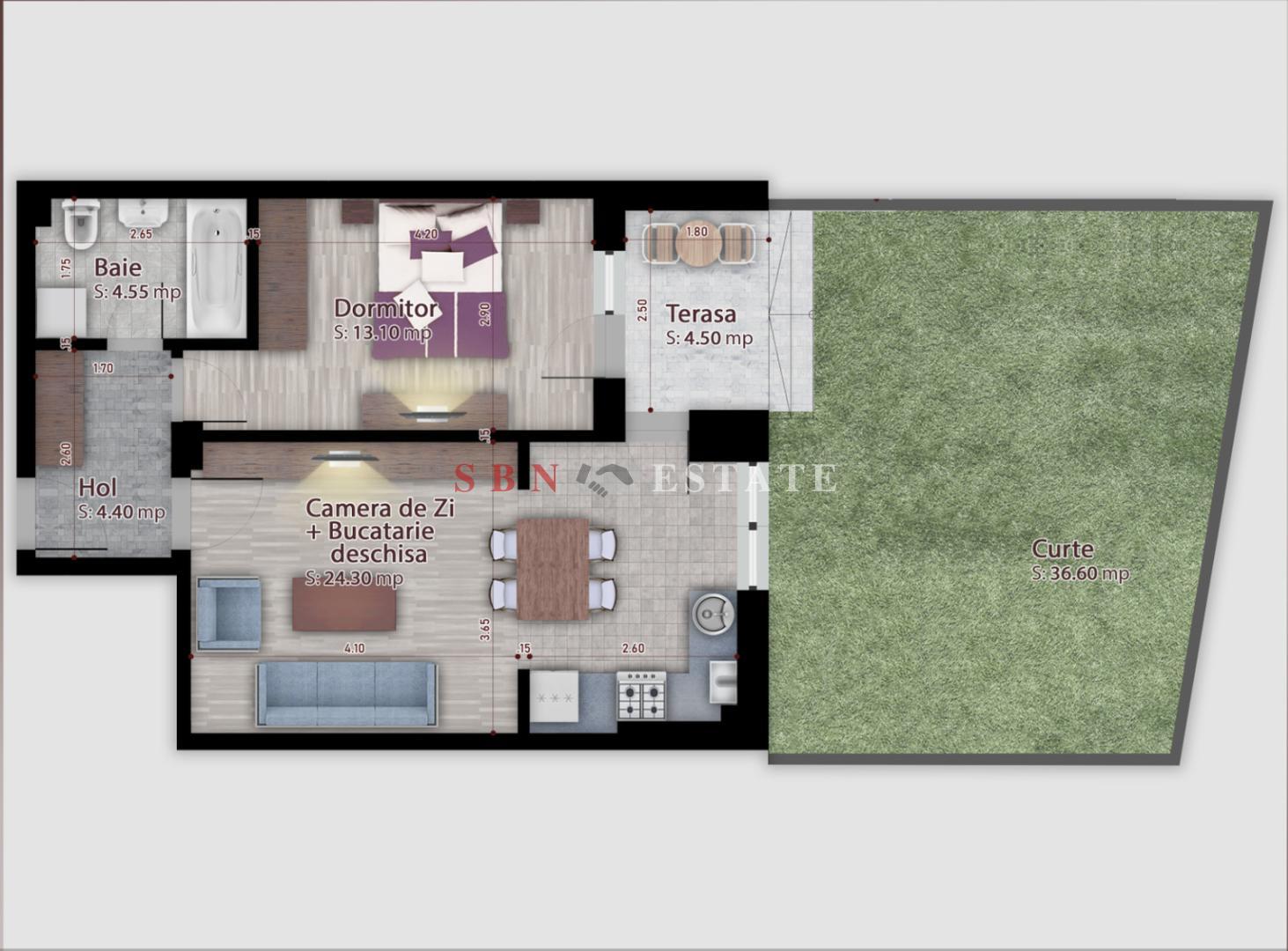 -Totodata beneficiaza de o curte generoasa de 36.6 mp