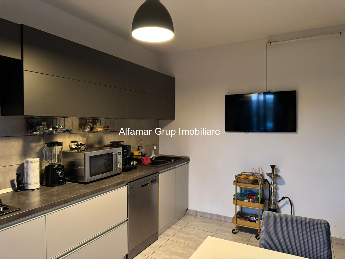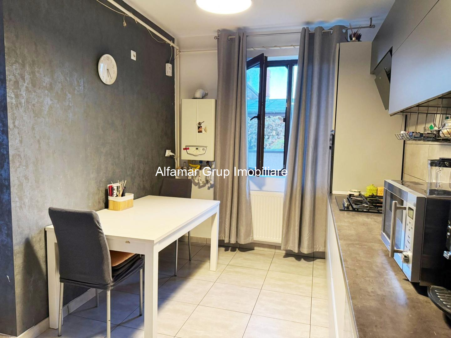 - Bucătărie semiutilată și mobilată, perfectă pentru prepararea meselor zilnice,