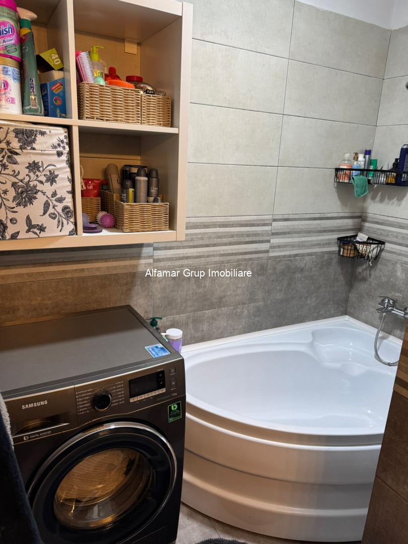 - O baie modernă, dotată cu geam pentru ventilație naturală,