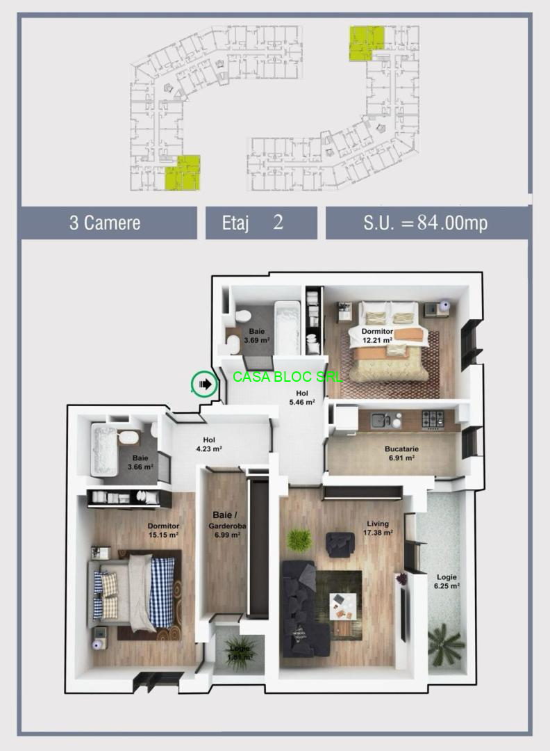 Compania imobiliara CASA BLOC va prezinta spre vanzare un apartament foarte spatios si luminos de 3 camere, 84 mp, bine amplasat in Sector 6 (Str. Stupca), amenajat (in regie proprie) doar cu solutii premium.