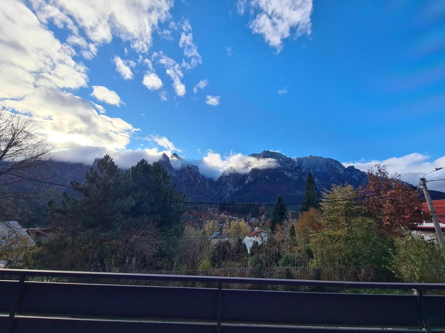 - Vedere neobstrucționată spre Crucea Caraiman și Munții Bucegi 🏔️🌅
