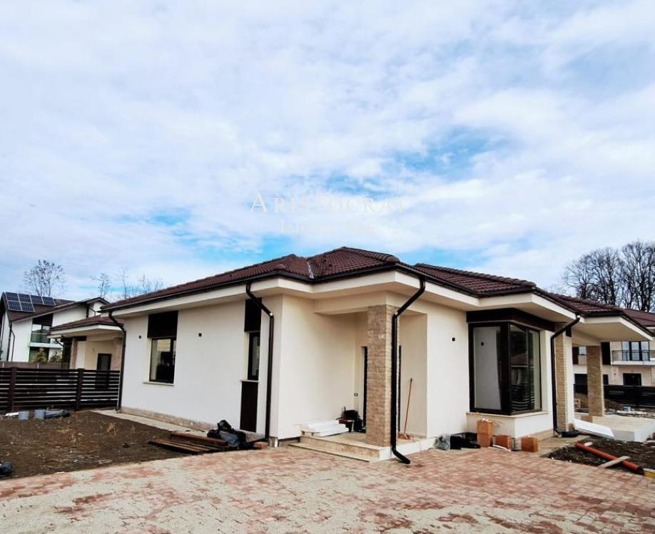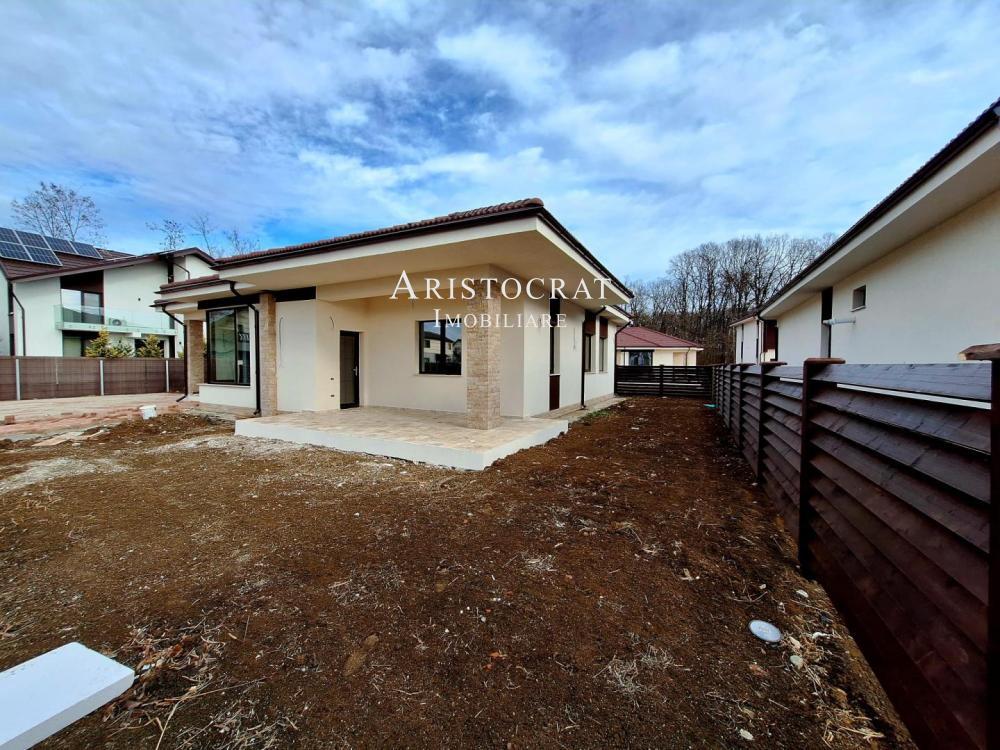 Dotari si finisaje: parchet triplu stratificat; glafuri interioare lemn cires; glafuri exterioare granit; robineti Grohe; profile termopan Gealan gama premium, armate cu otel zincat, culoare profile Mooreiche, geam Saint – Gobain Lowe – 4 seasson, feronerie Roto nt Germania, manere ferestre Secustik Titan Mat, plasa tantari; la exterior, cos de fum pentru semineu tras prin placa, placat cu piatra naturala; acoperis - tigla ceramica Tondach; gard din lemn masiv de culoare maro; poarta din fier forjat cu deschidere culisanta cu telecomanda pentru acces auto; izolatie cu vata bazaltica de 10 cm; placa de beton peste parter, podul 55mp se poate folosi pentru depozitare; inaltimea camerelor de 3m; finisarea peretilor si tavanelor la interior cu tencuiala clasica; fundatia 1.3m adancime.