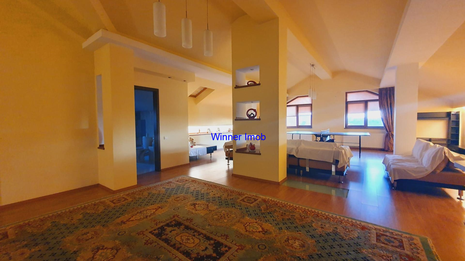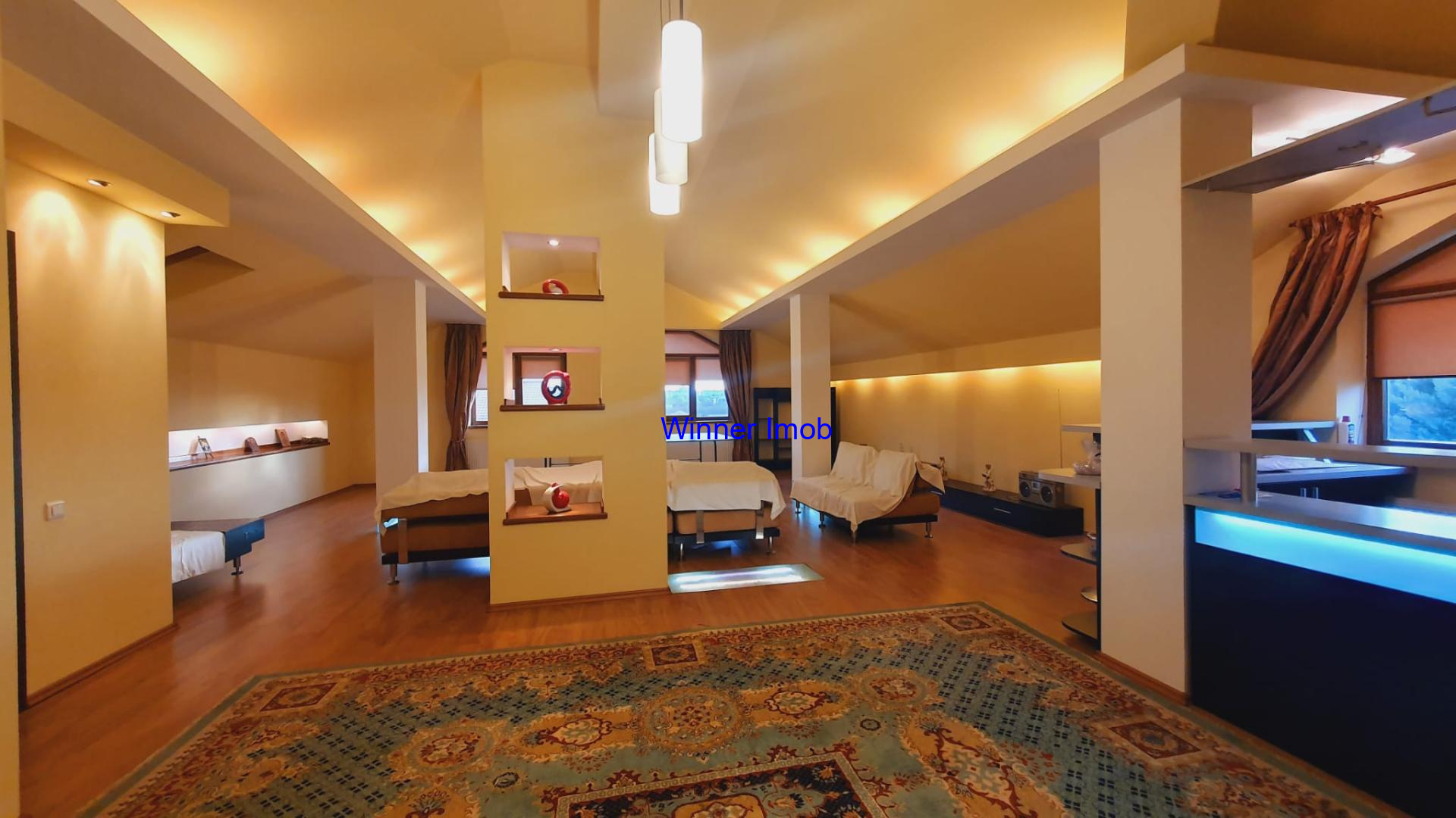 Mansarda: open space pentru relaxare si distractii, chicineta, 2 camere si baie