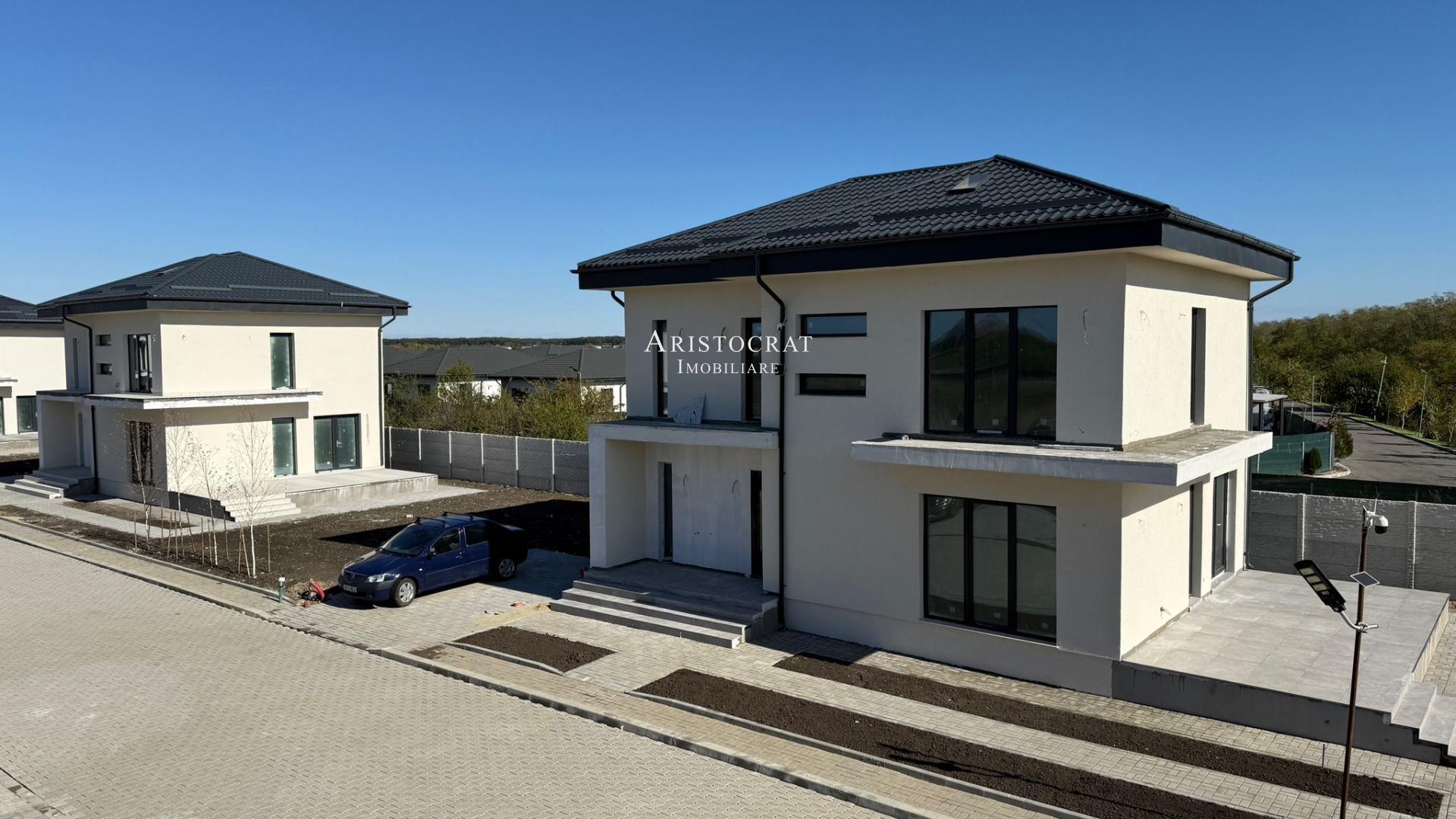 - Tip imobil: Vila modernă cu 5 camere și 4 dormitoare, construită pe structură de cărămidă, finalizată în 2025.