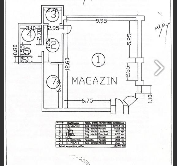 Piata DelfinuluiSuprafata totala: 360 mp. Inaltime spatiu: 4,5 m.Compartimentare:Parter: 185 mp – open space prin constructie (in prezent compartimentat cu pereti de rigips, ce pot fi reconfigurati). La parter exista 2 toalete.Subsol: 175 mp – cu acces cu rampa pentru TIR.Spatiul are curent trifazic 45 kW, gaze, apa, canalizareAcces facil pentru aprovizionareAcces TIR direct la subsol – avantaj logistic major;Putere electrica mare – potrivit pentru echipamente profesionale;